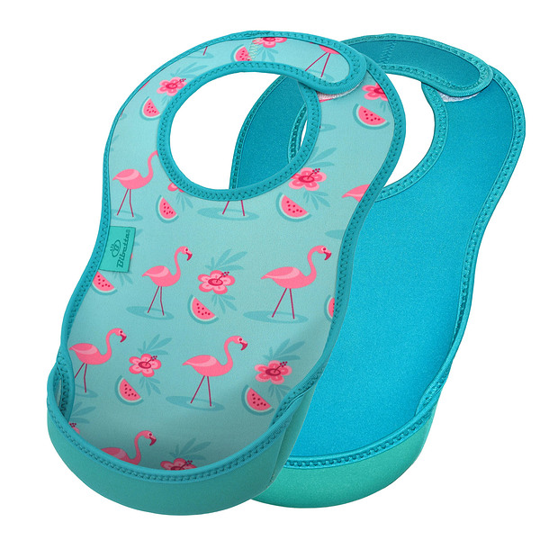 Bibetta ビベッタ ウルトラビブ2枚入 フラミンゴ/ターコイズシー 携帯用くるくるエプロン お食事用 エプロン