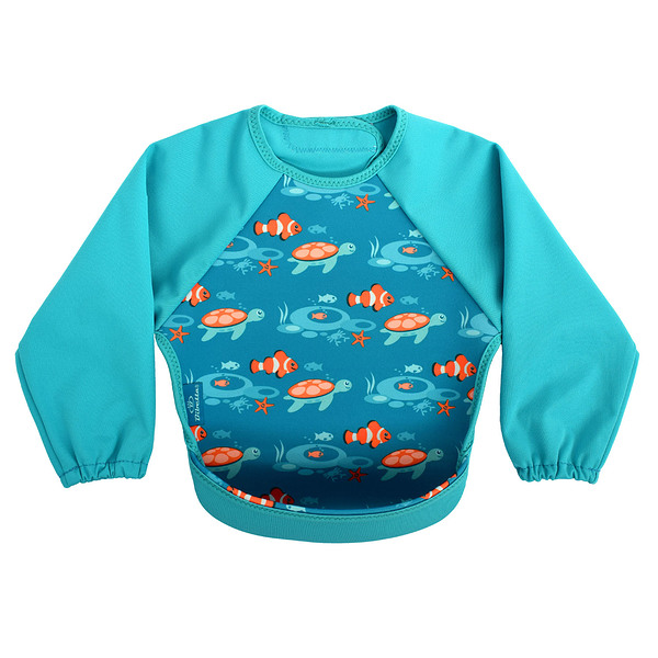 イメージ拡大 イメージ拡大 Bibetta ビベッタ ラグランスリーブ付き ウルトラビブ トロピカルフィッシュ 携帯用くるくるエプロン お食事用 エプロン