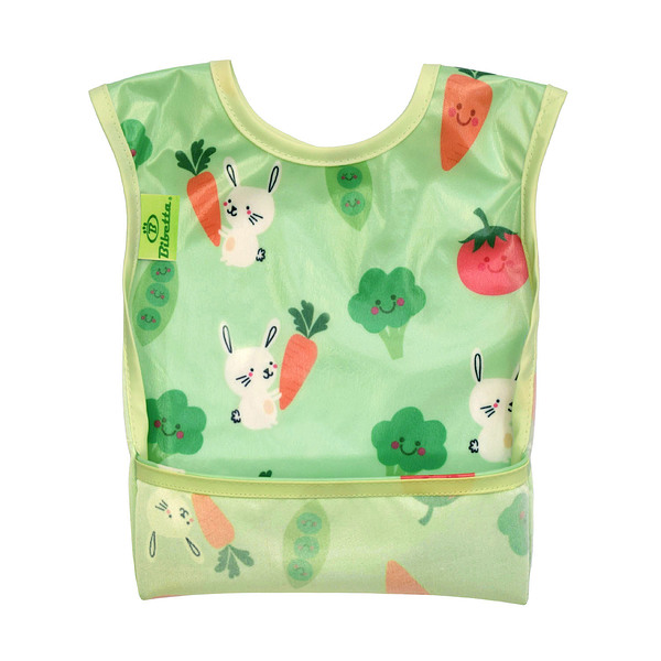Bibetta ビベッタ ワイプイージー カバーオール 長袖ビブ グリーン バニーアンドベジタブル 携帯用くるくるエプロン お食事用 エプロン