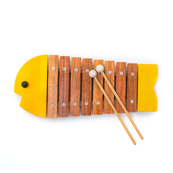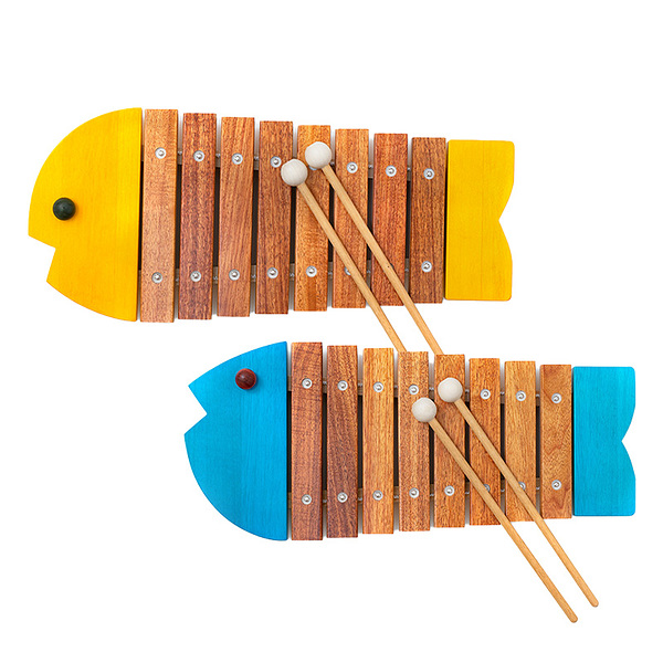 イメージ拡大 イメージ拡大 (BorneLund) おさかなシロフォン(イエロー キイロ)木のおもちゃ/木琴/楽器/シロフォン/出産祝い