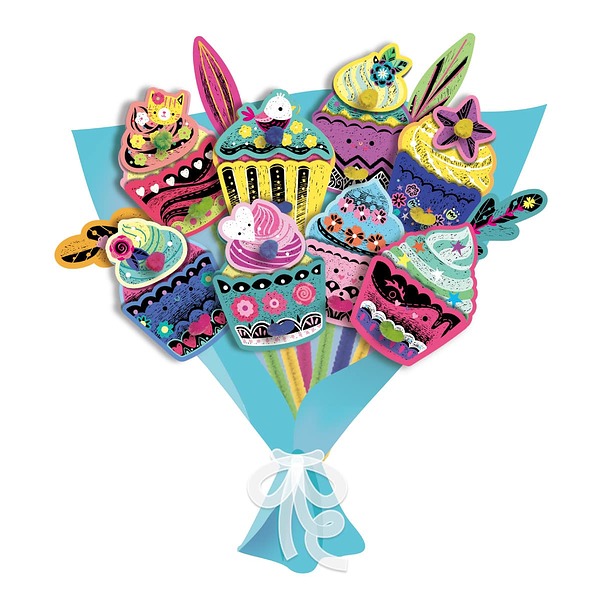 イメージ拡大 イメージ拡大 (BorneLund) スクラッチアート カップケーキのブーケ アート カップケーキ お花 デコレーション シート スクラッチ 創作 知育玩具 指先知育 オリジナル作品