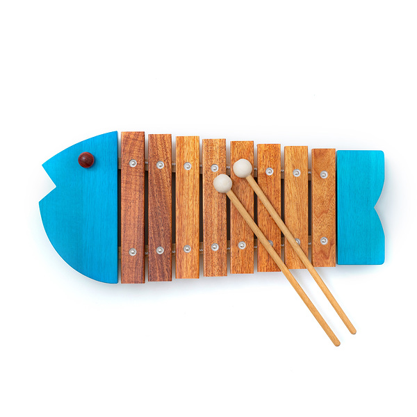 イメージ拡大 イメージ拡大 (BorneLund) おさかなシロフォン(ブルー アオ)木のおもちゃ/木琴/楽器/シロフォン/出産祝い