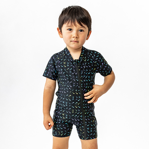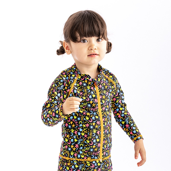 ナイキ NIKE ロングスリーブ ラッシュガード トドラーガール ブラック 100cm SS22 UV ジッパー式 水着 女子