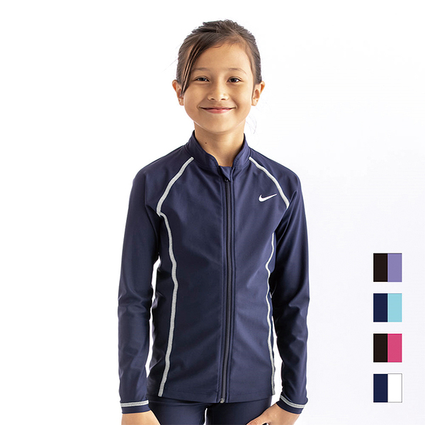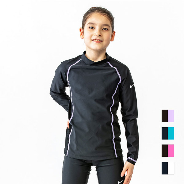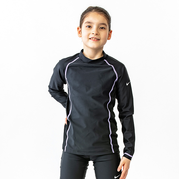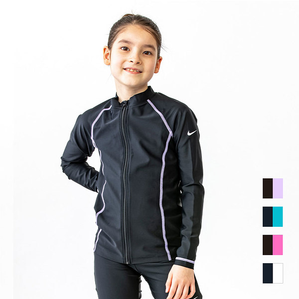 ナイキ NIKE スクール ロングスリーブ ラッシュガード GIRLS ブラック/パープルパルス 130cm SP22 F/Z UV ジッパー式 水着 スクール水着 女子