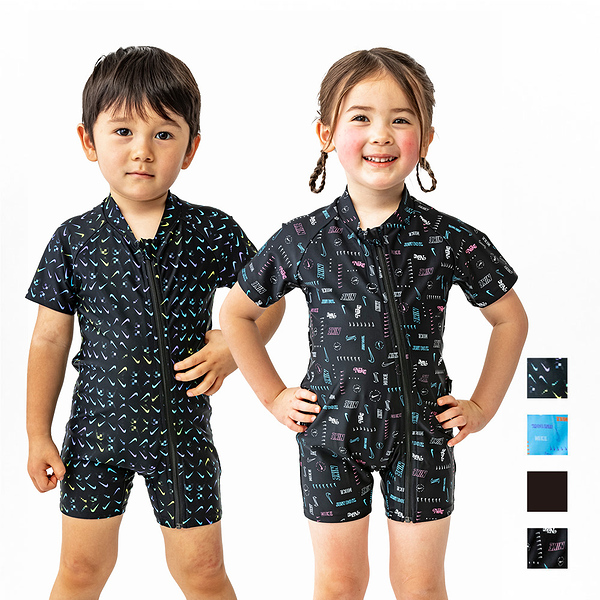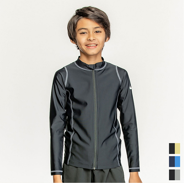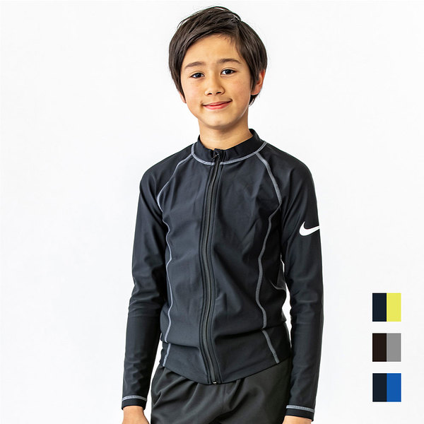 ナイキ NIKE SS24 BOYS ロングスリーブ F/Z UV ハイドロガード グレー/ブルー/イエロー 120 130 140 150 160 水泳 長袖 キッズ UV ファスナー付 スクール水着 男子 男の子 プール 1991092