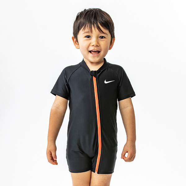 ナイキ NIKE ロングスリーブ ラッシュガード トドラーガール ブラック 80cm SS22 UV ジッパー式 水着 女子