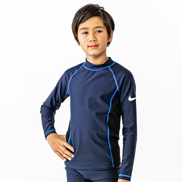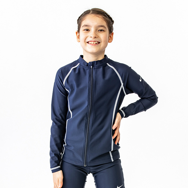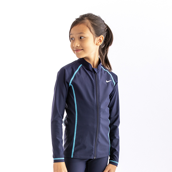 ナイキ NIKE スクール ロングスリーブ ラッシュガード GIRLS オブシディアン/ラグーンパルス 130cm SP22 F/Z UV ジッパー式 水着 スクール水着 女子