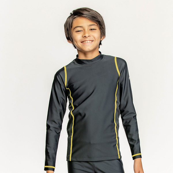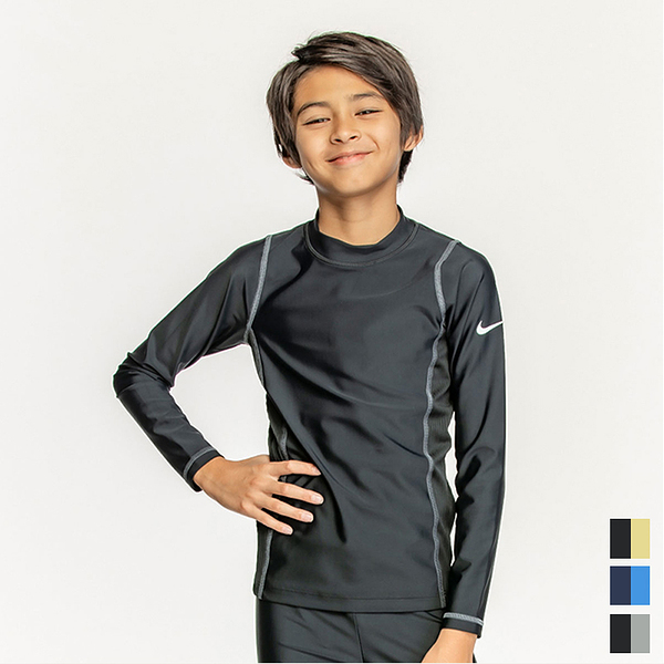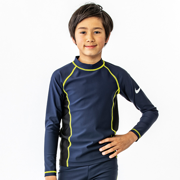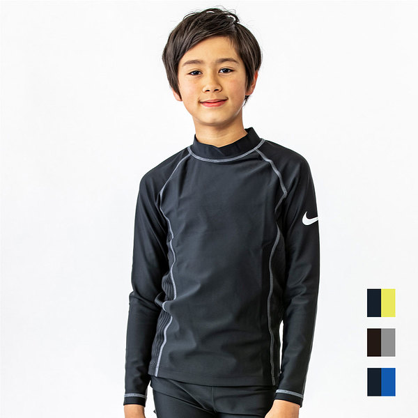 ナイキ NIKE SS24 BOYS ロングスリーブ UV ハイドロガード グレー/ブルー/イエロー 120 130 140 150 160 水泳 長袖 キッズ UV スクール水着 男子 男の子 プール 1991091