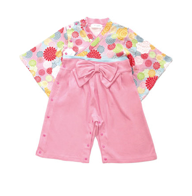 羽織 袴 菊柄ロンパース (ピンク) サイズ 70 全開 女の子 ベビー お正月 お食い初め 初節句 記念日 フォーマル