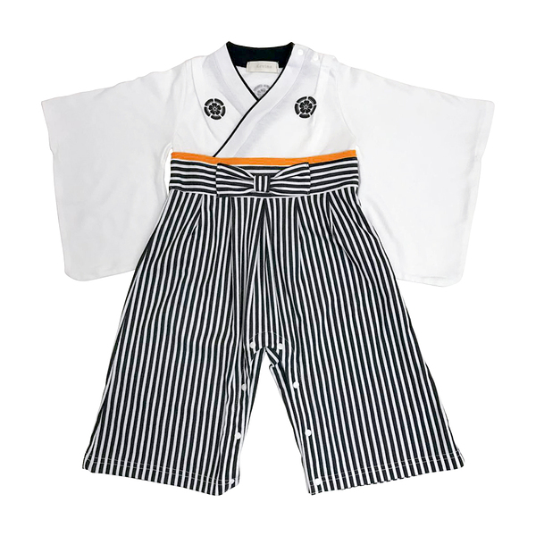 羽織 袴 ロンパース (白) サイズ 70 男の子 ベビー お正月 お食い初め 初節句 記念日 フォーマル