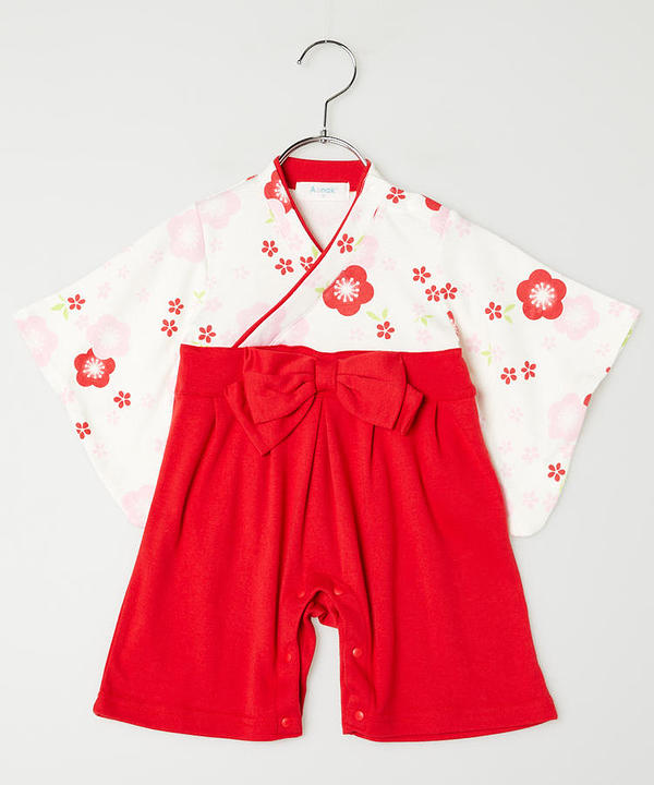 梅柄 袴 ロンパース (赤) サイズ 70 女の子 ベビー お正月 お食い初め 初節句 記念日 フォーマル