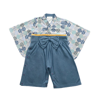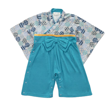 羽織 袴 丸和柄ロンパース (ターコイズブルー) サイズ 90 全開 男の子 ベビー お正月 お食い初め 初節句 記念日 フォーマル