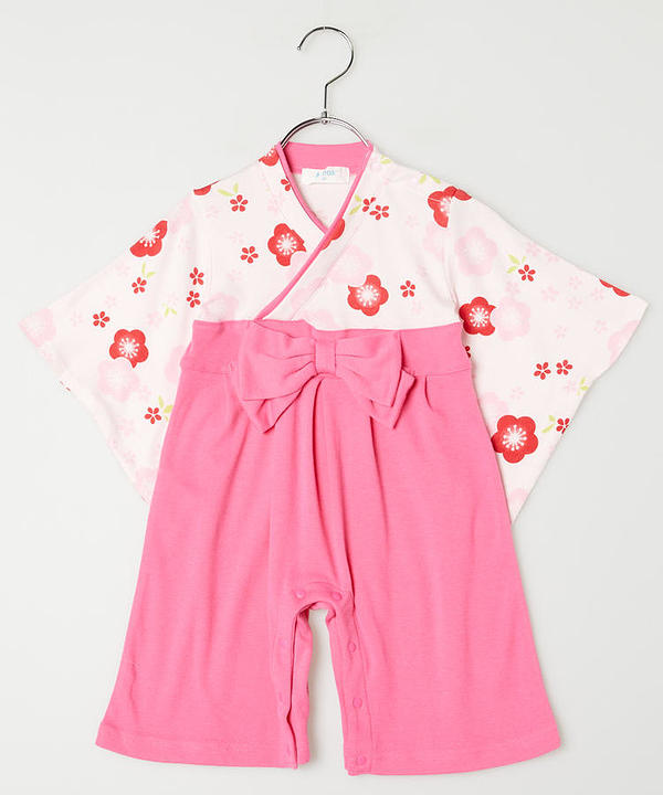 梅柄 袴 ロンパース (ピンク) サイズ 80 女の子 ベビー お正月 お食い初め 初節句 記念日 フォーマル