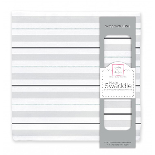 イメージ拡大 イメージ拡大 スワドルデザインズ (Swaddle Designs) モスリン おくるみ ブランケット セレニティストライプグレー 箱入り