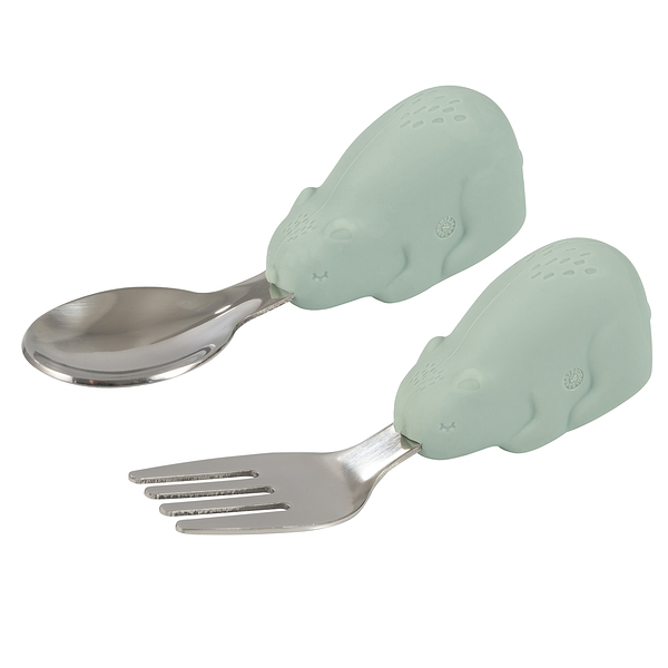 タイニートゥインクル ステンレススプーン&フォーク セージベアー Sage Bear Tiny Twinkle お食事エプロン 12ヵ月〜 1歳から ベビー カトラリー お食事 離乳食