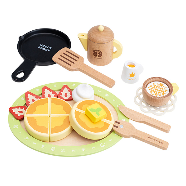 WOODY PUDDY ウッディプッディ はじめてのおままごと パンケーキ&カフェセット 木のおもちゃ ままごと ごっこ遊び パンケーキ カフェ フライパン 食育 おもちゃ 玩具 木製 知育玩具