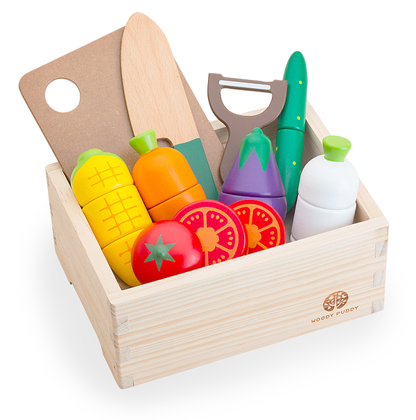 WOODY PUDDY (ウッディプッディ) はじめてのおままごと サラダセット 木箱入り 木のおもちゃ おままごとセット