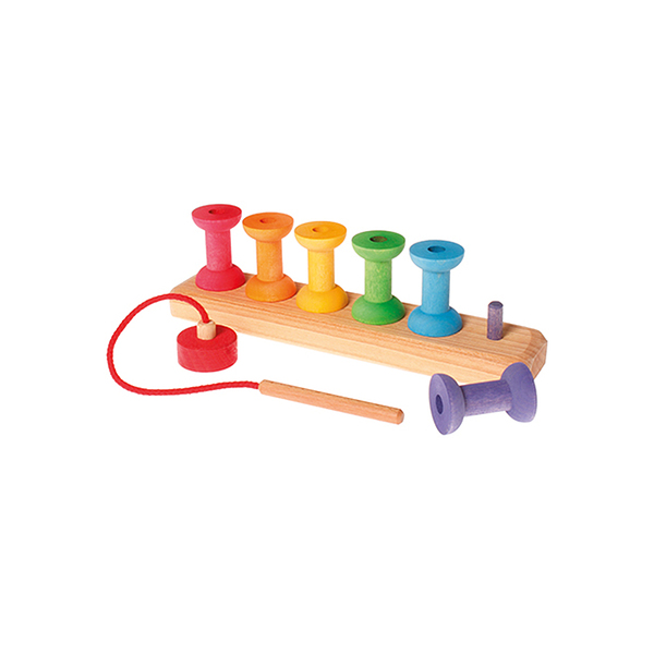 イメージ拡大 イメージ拡大 グリムス社 ひも通し 虹のボビン 虹色 紐通し 木のおもちゃ 出産祝い プレゼント グリムス 知育玩具