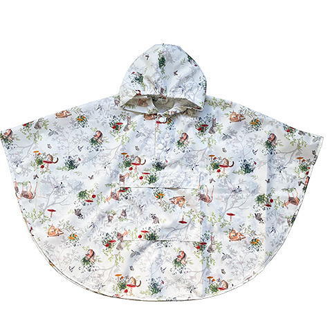 森の仲間たちポンチョ S ホワイト レインコート レインポンチョ ポケット キッズ レイングッズ ユアーズアーミーワールド FABHUG