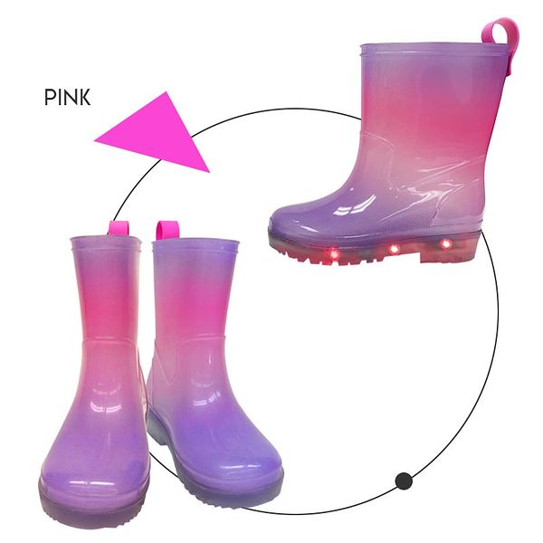光るレインシューズ ピンク 19cm Fabhug 長靴 キッズ 子供 レイングッズ 光る 歩くと光る フラッシュ 無地 夜間 安全 グラデーション レインブーツ 雨具 入園準備 女の子 男の子 かわいい おしゃれ ユアーズアーミーワールド 小学校