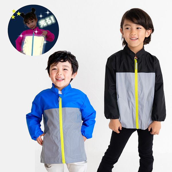 ウィンドブレーカー キッズ 男の子 黒 ブルー 100 110 120 130 140 150cm 子供用 反射 光る 撥水 はっ水 防風 レイングッズ 男の子 女の子 自転車 雨具 おしゃれ 入園 入学準備 カッパ ユアーズアーミーワールド