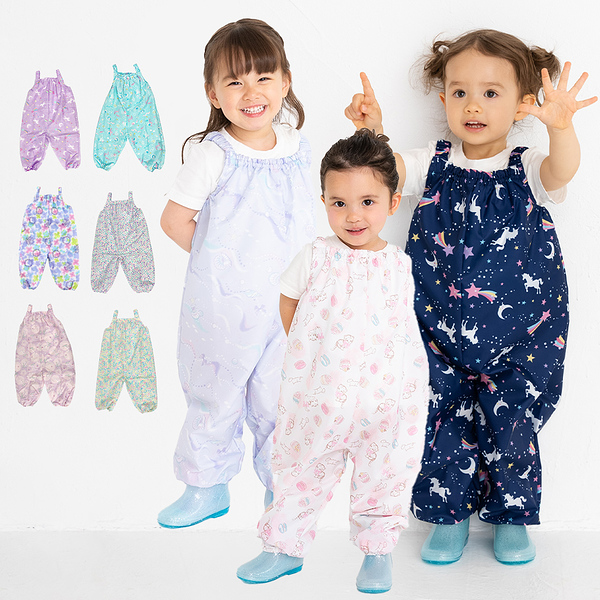プレイウェア フリーサイズ 女の子 砂場着 遊び着 オーバーオール レインパンツ 80cm 90cm 100cm ベビー キッズ レイングッズ 水遊び 撥水 はっ水 ポーチ付き 収納 コンパクト ユアーズアーミーワールド