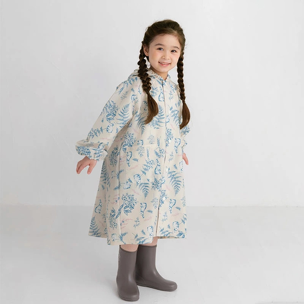 Petit Angelina レインコート 水彩フワラー ブルー 90cm ランドセル対応 キッズ 子供 レイングッズ 雨具 入園 入学準備 カッパ ユアーズアーミーワールド