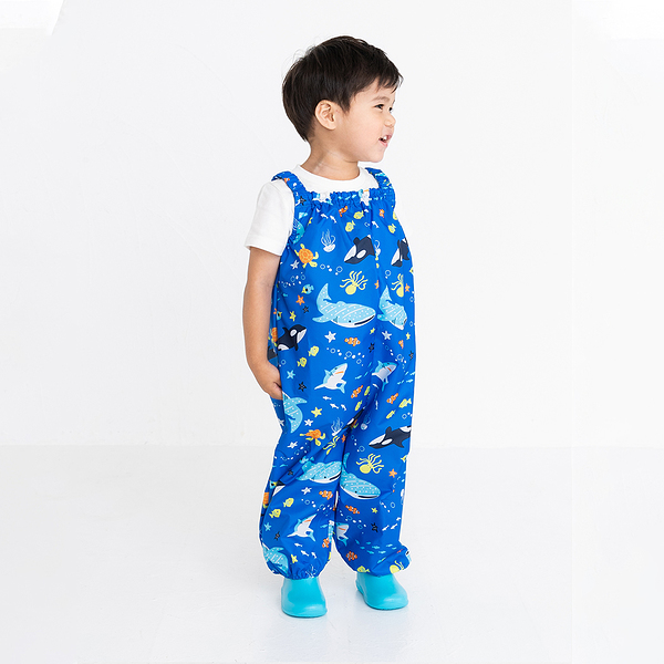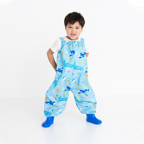 プレイウェア マリン ブルー フリーサイズ 砂場着 遊び着 オーバーオール レインパンツ 80 90 100 ベビー キッズ レイングッズ 水遊び 撥水 ユアーズアーミーワールド