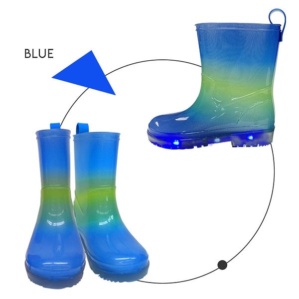 光るレインシューズ ブルー 19cm Fabhug 長靴 キッズ 子供 レイングッズ 光る 歩くと光る フラッシュ 無地 夜間 安全 グラデーション レインブーツ 雨具 入園準備 女の子 男の子 かわいい おしゃれ ユアーズアーミーワールド 小学校