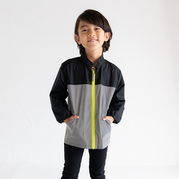 ウィンドブレーカー キッズ クロ 110cm 子供用 反射 光る 撥水 はっ水 防風 レイングッズ 男の子 女の子 自転車 雨具 おしゃれ 入園 入学準備 カッパ ユアーズアーミーワールド