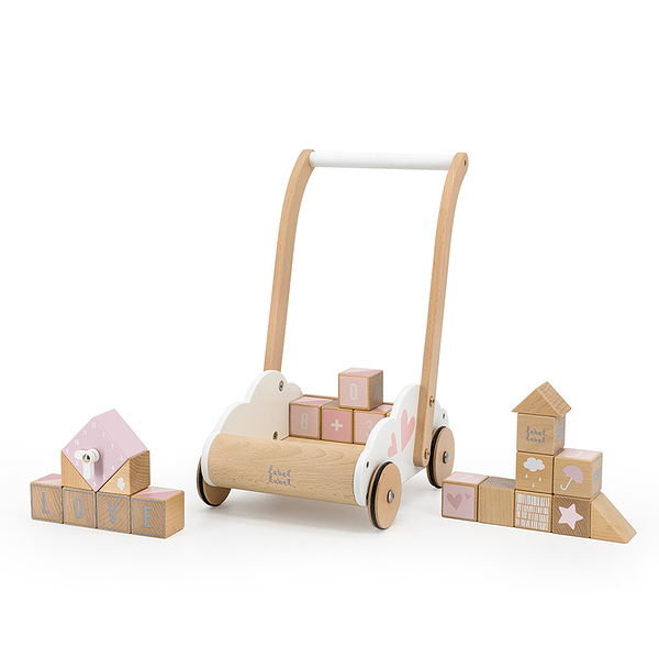 イメージ拡大 イメージ拡大 エデュテ レーベルレーベル エデュケーショナルベビーウォーカー ピンク 木のおもちゃ/お誕生日祝い/知育玩具