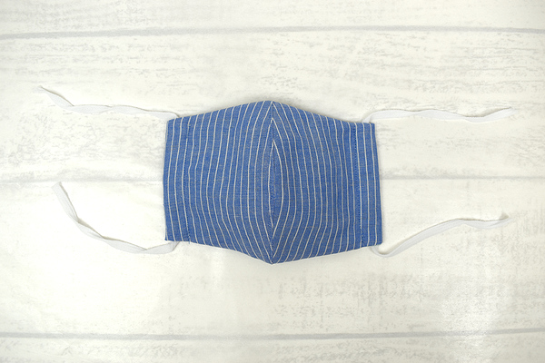 イメージ拡大 イメージ拡大 大人用 マスク ストライプ ブルー 綿麻混 親子コーデ