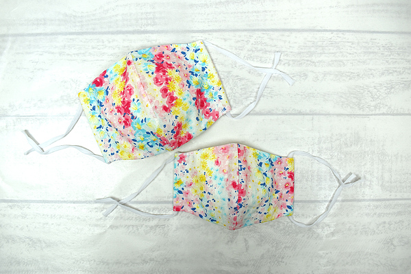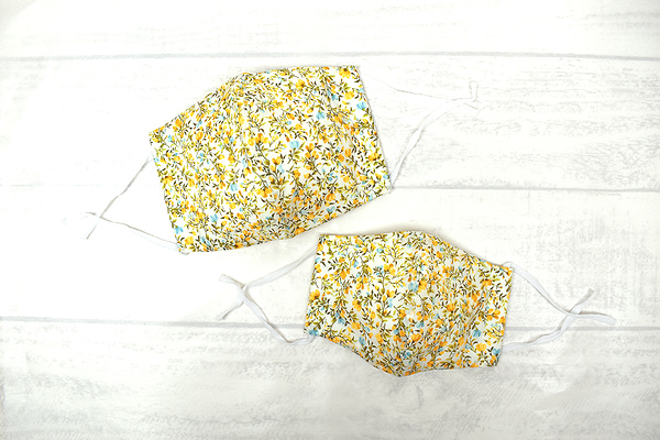 イメージ拡大 イメージ拡大 大人用 マスク リトルフラワー ブルーイエロー 綿100% 親子コーデ