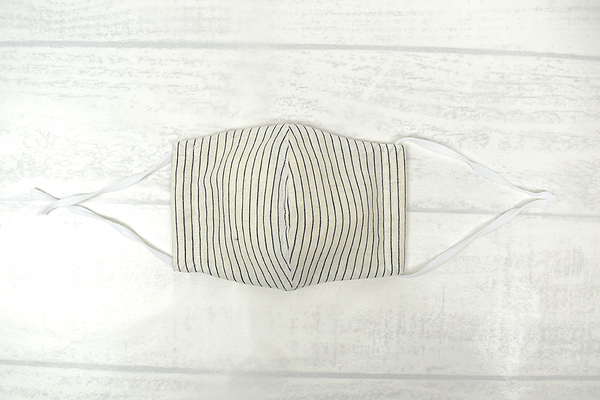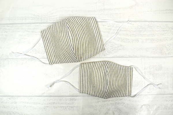イメージ拡大 イメージ拡大 大人用 マスク ストライプ ホワイト 綿麻混 親子コーデ