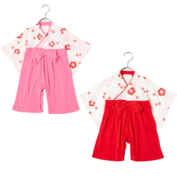 イメージ拡大 イメージ拡大 梅柄 袴 ロンパース ピンク/赤 サイズ 60 70 80 90 女の子 ベビー お正月 お食い初め 初節句 記念日 フォーマル