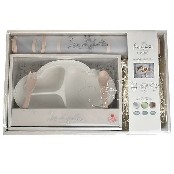 イメージ拡大 イメージ拡大 lien de famille リヤンドファミーユ ビヤン マンジェ もぐもぐ5点セット ベージュ ベビープレートセット & 立体マット & 立体エプロン bien mange 食器セット