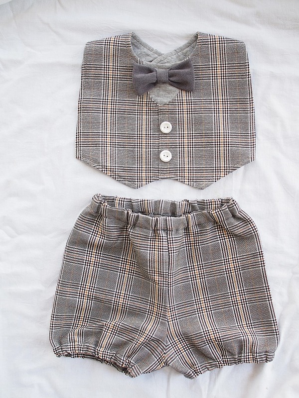 イメージ拡大 イメージ拡大 lien de famille リヤンドファミーユ 男の子 フォーマルスタイ&ブルマ 2点セット チェックブラウン おしゃれ おでかけ スタイ