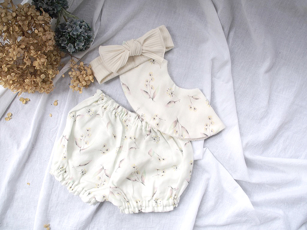 イメージ拡大 イメージ拡大 lien de famille リヤンドファミーユ 花言葉スタイ & ブルマ & ヘアバンド 3点セット かすみ草 (イエロー)おしゃれ おでかけ スタイ