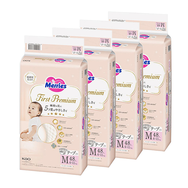 イメージ拡大 イメージ拡大 メリーズ テープ ファーストプレミアム Mサイズ 6kg 〜 11kg 192枚 (48枚×4袋) テープ 花王 Merries 紙おむつ 紙オムツ プレミアム カシミヤタッチ ふんわり さらさら