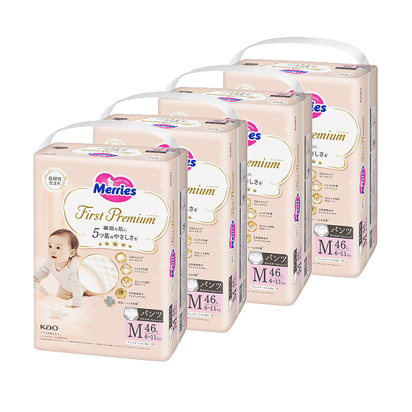 イメージ拡大 イメージ拡大 メリーズ パンツ ファーストプレミアム パンツ Mサイズ 6kg 〜 11kg 184枚 (46枚×4袋) パンツタイプ 花王 Merries 紙おむつ 紙オムツ プレミアム カシミヤタッチ ふんわり さらさら