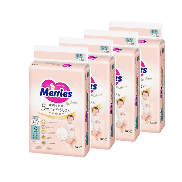 イメージ拡大 イメージ拡大 メリーズ テープ ファーストプレミアム Sサイズ 4kg 〜 8kg 240枚 (54枚×4袋) テープ 花王 Merries 紙おむつ 紙オムツ プレミアム カシミヤタッチ ふんわり さらさら