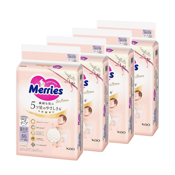 イメージ拡大 イメージ拡大 メリーズ テープ ファーストプレミアム 新生児用 5000gまで 240枚 (60枚×4袋) テープ 花王 Merries 紙おむつ 紙オムツ プレミアム カシミヤタッチ ふんわり さらさら