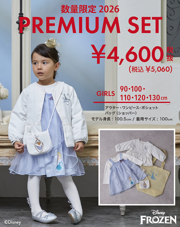 イメージ拡大 イメージ拡大 [2026年福袋] プティ マイン ディズニーコラボ 3点セット 100cm girl 女の子 女児 向け オラフ アナ雪 ナルミヤ ナルミヤインターナショナル プティマイン プチマイン
