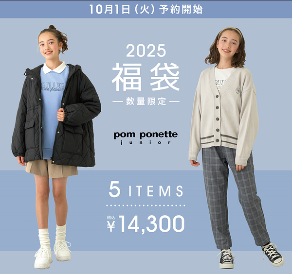 イメージ拡大 イメージ拡大 [2025年福袋] ポンポネット ジュニア pom ponette junior Bセット 5点セット Sサイズ 140cm ナルミヤ ナルミヤインターナショナル キッズ ギフト