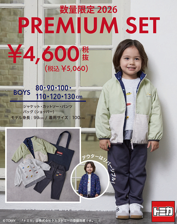 イメージ拡大 イメージ拡大 [2026年福袋] プティ マイン トミカコラボ 3点セット 120cm boy 男の子 男児 向け ナルミヤ ナルミヤインターナショナル プティマイン プチマイン