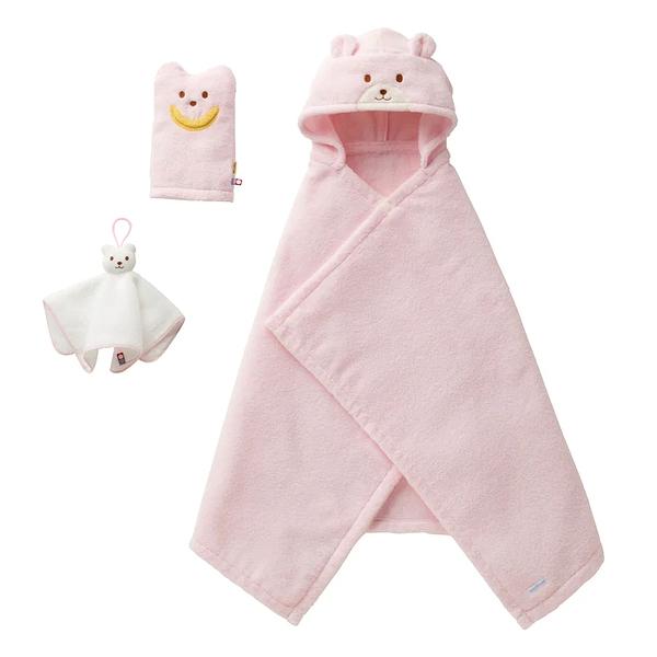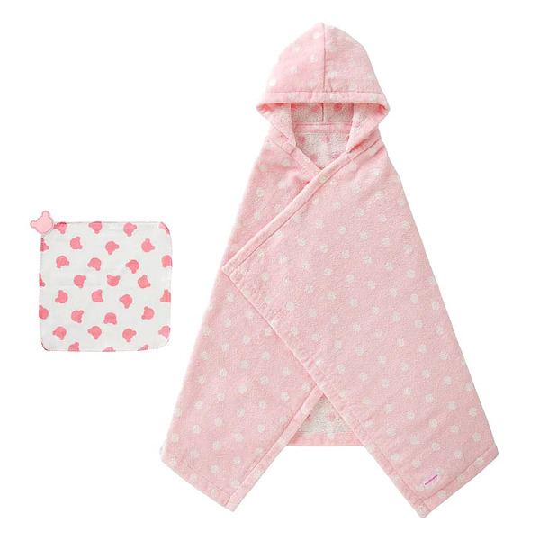 イメージ拡大 イメージ拡大 ミキハウス mikihouse バスポンチョ&ハンカチセット ピンク 湯上りタオル バスタオル お風呂セット 日本製 出産祝い