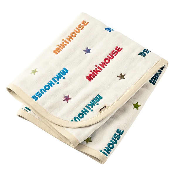 イメージ拡大 イメージ拡大 ミキハウス mikihouse ロゴ刺繍 六重織 ガーゼケット Sサイズ 66×54cm 日本製 ブランケット