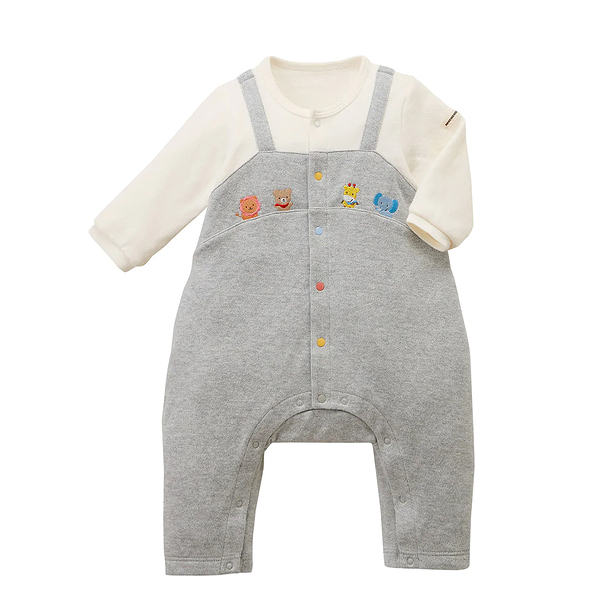 イメージ拡大 イメージ拡大 ミキハウス mikihouse どうぶつ刺繍 カバーオール 80cm 長袖ロンパース 日本製