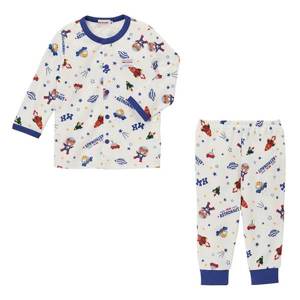 イメージ拡大 イメージ拡大 ミキハウス mikihouse 長袖パジャマ スペースワールド (11-7301-380) 80cm 前開き ホックボタン パジャマ ルームウェア 抗ウイルス加工素材