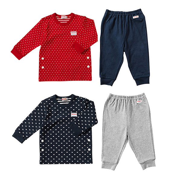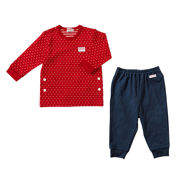 イメージ拡大 イメージ拡大 ミキハウス mikihouse 長袖パジャマ ドット ネイビー/レッド (10-7308-827) 80cm 〜 130cm パジャマ ルームウェア 抗ウイルス加工素材